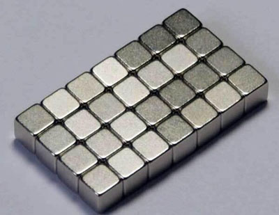 稀土材料因?yàn)榫邆浞浅:玫拇盘匦?,?duì)于制備風(fēng)力渦輪機(jī),電動(dòng)汽車和混合動(dòng)力汽車以及家用電子器件至關(guān)重要。但是同時(shí)他們也具有價(jià)格敖貴和來源單一(只有中國有)的特點(diǎn)。然而,根據(jù)美國電子能源公司的消息,電動(dòng)機(jī)使用磁鐵將電能轉(zhuǎn)換成機(jī)械能,一個(gè)很小尺寸的燒結(jié)的稀土磁體便能夠產(chǎn)生非常強(qiáng)大的磁場,這使制造商能夠制備更小和更輕的汽車成為可能。這家公司已經(jīng)與美國特拉華大學(xué)研究人員合作以尋找一種能夠?qū)⑾⊥链盆F的電阻率提高至少30%的制備工藝。他們的目標(biāo)是利用電阻率增加的磁鐵即使在汽車高速運(yùn)轉(zhuǎn)時(shí)也能降低發(fā)動(dòng)機(jī)的效率損失。上圖便是塊狀的鍍鎳的釹磁鐵,是世界上使用最廣泛的一種稀土磁鐵之一。