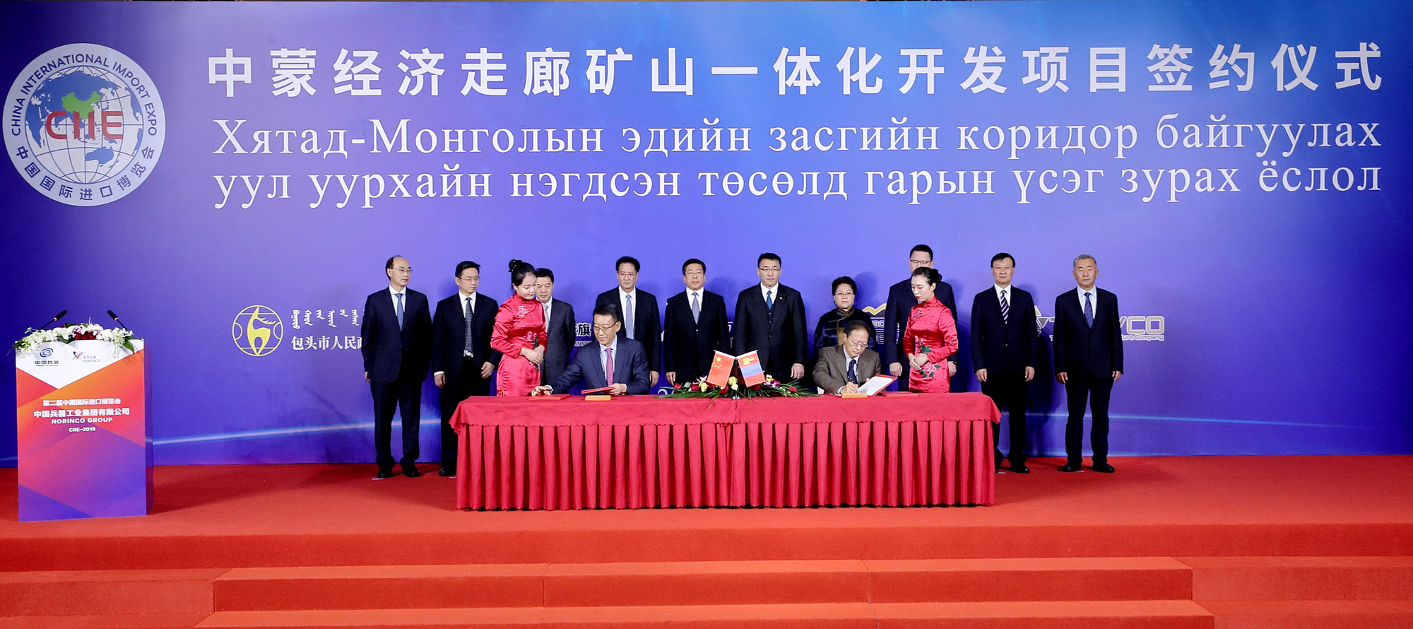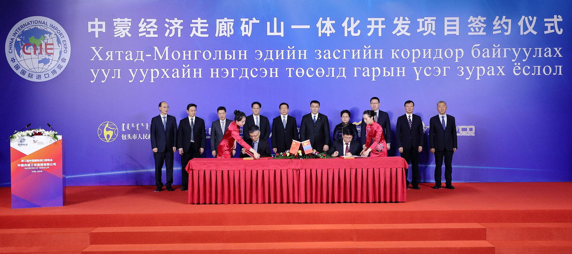 11月4日,第二屆中國國際進(jìn)口博覽會開幕前,在中國兵器工業(yè)集團(tuán)有限公司董事長焦開河和蒙古礦業(yè)與重工業(yè)部部長蘇米亞巴扎爾·道古蘇仁、國務(wù)院國資委副主任任洪斌、內(nèi)蒙古自治區(qū)副主席艾麗華的共同見證下,中蒙經(jīng)濟(jì)走廊礦山一體化項目在上海簽約。簽約前,各相關(guān)方進(jìn)行了友好會談。