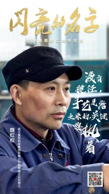在2019年全國“最美職工”發(fā)布儀式現(xiàn)場,中國兵器工業(yè)集團(tuán)武漢重型機床集團(tuán)有限公司機械加工公司鉗工魏紅權(quán),與來自全國各地的另外8名獲獎?wù)吆?個集體,共同接受了中宣部、中華全國總工會授予的這一殊榮。