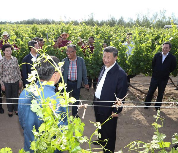 習(xí)近平總書記9日在銀川考察調(diào)研。他先后來(lái)到賀蘭縣稻漁空間鄉(xiāng)村生態(tài)觀光園、賀蘭山東麓葡萄種植園,了解當(dāng)?shù)匕l(fā)展特色農(nóng)業(yè)產(chǎn)業(yè)、加強(qiáng)賀蘭山生態(tài)保護(hù)等情況。