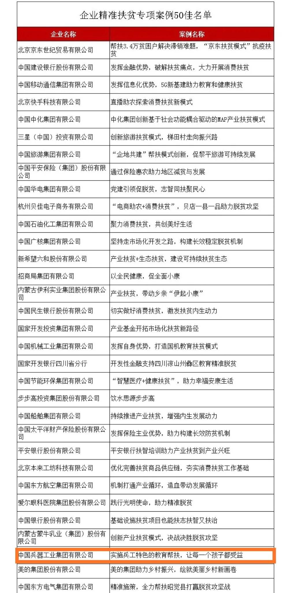 兵器工業(yè)集團教育扶貧獲評國務院扶貧辦2020年企業(yè)精準扶貧專項案例“50佳” |