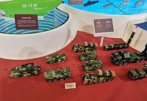 ▲我國(guó)自主研制的主戰(zhàn)坦克、輪式步兵戰(zhàn)車(chē)和遠(yuǎn)程火箭炮等陸軍主戰(zhàn)裝備