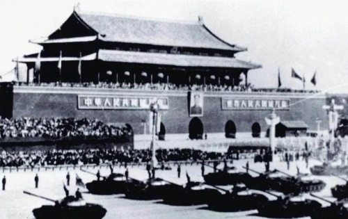 1959年8月22日,凝結著干部職工心血和汗水的32輛59式坦克,比建廠時計劃進度提前一年交付部隊,經過嚴格考核試驗后參加了建國十周年國慶大閱兵。