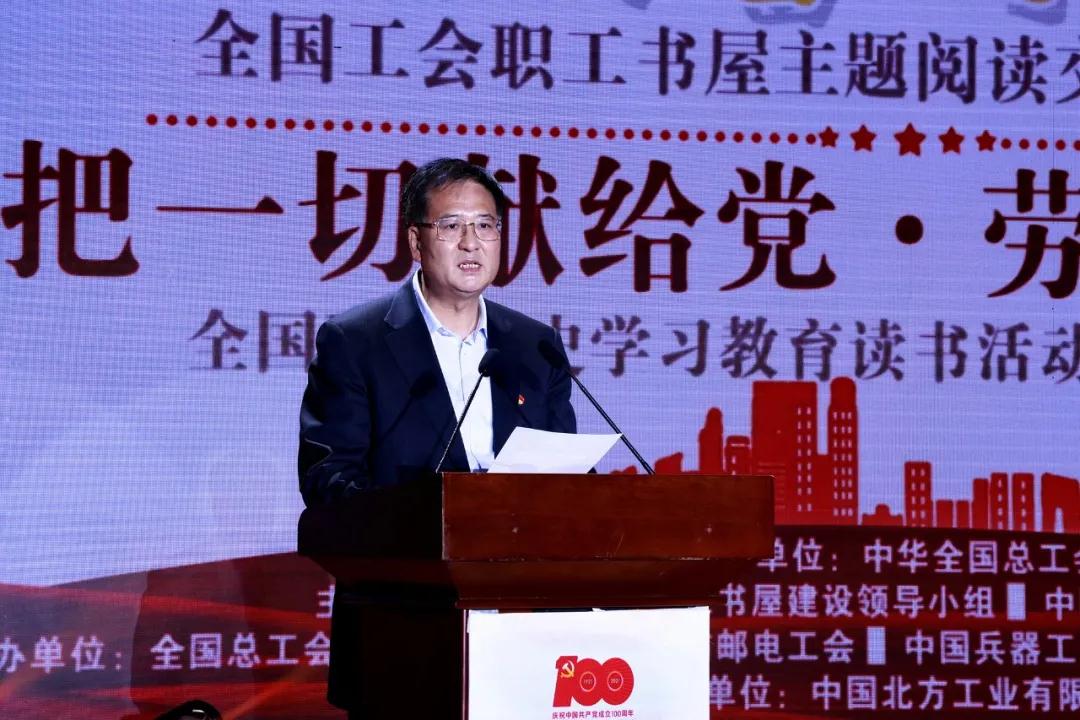 4月23日是第26個(gè)世界讀書日。在中華全國總工會(huì)指導(dǎo)下,全國工會(huì)職工書屋建設(shè)領(lǐng)導(dǎo)小組和中國兵器工業(yè)集團(tuán)有限公司共同舉辦了第五屆“閱讀經(jīng)典好書 爭當(dāng)時(shí)代工匠”全國工會(huì)職工書屋主題閱讀交流活動(dòng)暨“把一切獻(xiàn)給黨·勞動(dòng)創(chuàng)造幸?!比珖毠h史學(xué)習(xí)教育讀書活動(dòng)啟動(dòng)儀式。中華全國總工會(huì)黨組書記、副主席、書記處第一書記陳剛出席活動(dòng)并講話,中國兵器工業(yè)集團(tuán)有限公司黨組書記、董事長焦開河致辭。陳剛向焦開河傳授活動(dòng)火炬。全國總工會(huì)黨組成員、經(jīng)費(fèi)審查委員會(huì)主任、全國工會(huì)職工書屋建設(shè)領(lǐng)導(dǎo)小組組長李曉鐘,全國總工會(huì)兼職副主席高鳳林,中國兵器工業(yè)集團(tuán)有限公司黨組副書記周艦出席活動(dòng)。