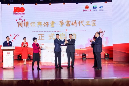 第五屆“閱讀經(jīng)典好書 爭當(dāng)時(shí)代工匠”全國工會(huì)職工書屋主題閱讀交流活動(dòng)正式啟動(dòng),現(xiàn)場進(jìn)行火炬?zhèn)魇?/p>