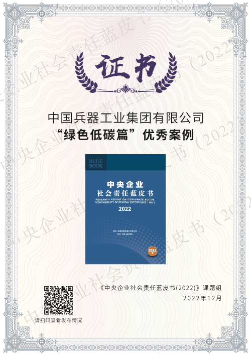 兵器工業(yè)集團(tuán)綠色低碳案例入選《中央企業(yè)社會(huì)責(zé)任藍(lán)皮書(2022)》