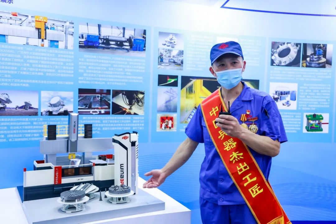 大國(guó)工匠主題展區(qū),“獨(dú)手焊?jìng)b”一機(jī)集團(tuán)的大國(guó)工匠盧仁峰,單掌舉焊槍?zhuān)附犹箍岁憫?zhàn)王;“鏜工大王”北重集團(tuán)的大國(guó)工匠戎鵬強(qiáng),以“手”當(dāng)“眼”書(shū)寫(xiě)深孔鏜傳奇;“彈藥精度把關(guān)人”西北工業(yè)集團(tuán)的張新停,憑“毫厘之功”給彈藥“立規(guī)矩”;“周氏精度”創(chuàng)造人淮海集團(tuán)的2021年大國(guó)工匠年度人物周建民,憑手感造出“微米級(jí)”。