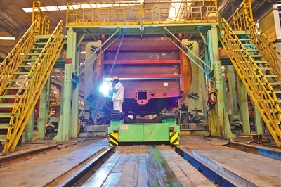 中國(guó)兵器工業(yè)集團(tuán)一機(jī)集團(tuán)北方創(chuàng)業(yè)公司生產(chǎn)線開足馬力生產(chǎn)鐵路車輛產(chǎn)品。日前,為圓滿完成1200臺(tái)C70E(H)型通用敞車生產(chǎn)任務(wù),該公司不斷創(chuàng)新生產(chǎn)組織模式,新、舊兩條生產(chǎn)線全面啟動(dòng),白、夜班雙班組織生產(chǎn),有效保障生產(chǎn)進(jìn)度。(王磊 攝)
